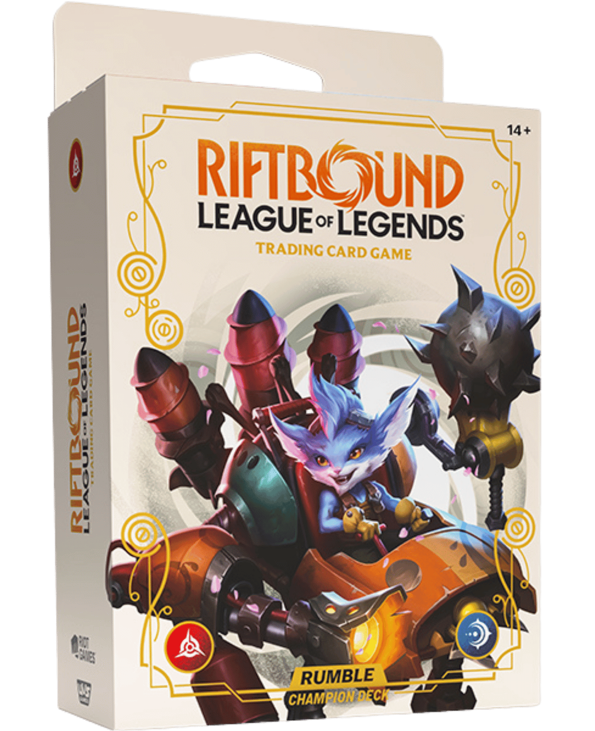 Assemble your Mecha-Minions! Rumble charges into battle with this Champion Deck. This preconstructed 56-card deck is built to overpower your opponents, packed with synergistic units and spells. Whether you're a new player ready to jump in or an engineering enthusiast looking for a fresh deck, Rumble is ready to... well, rumble, straight out of the box. Includes 1 Riftbound Spiritforged booster!