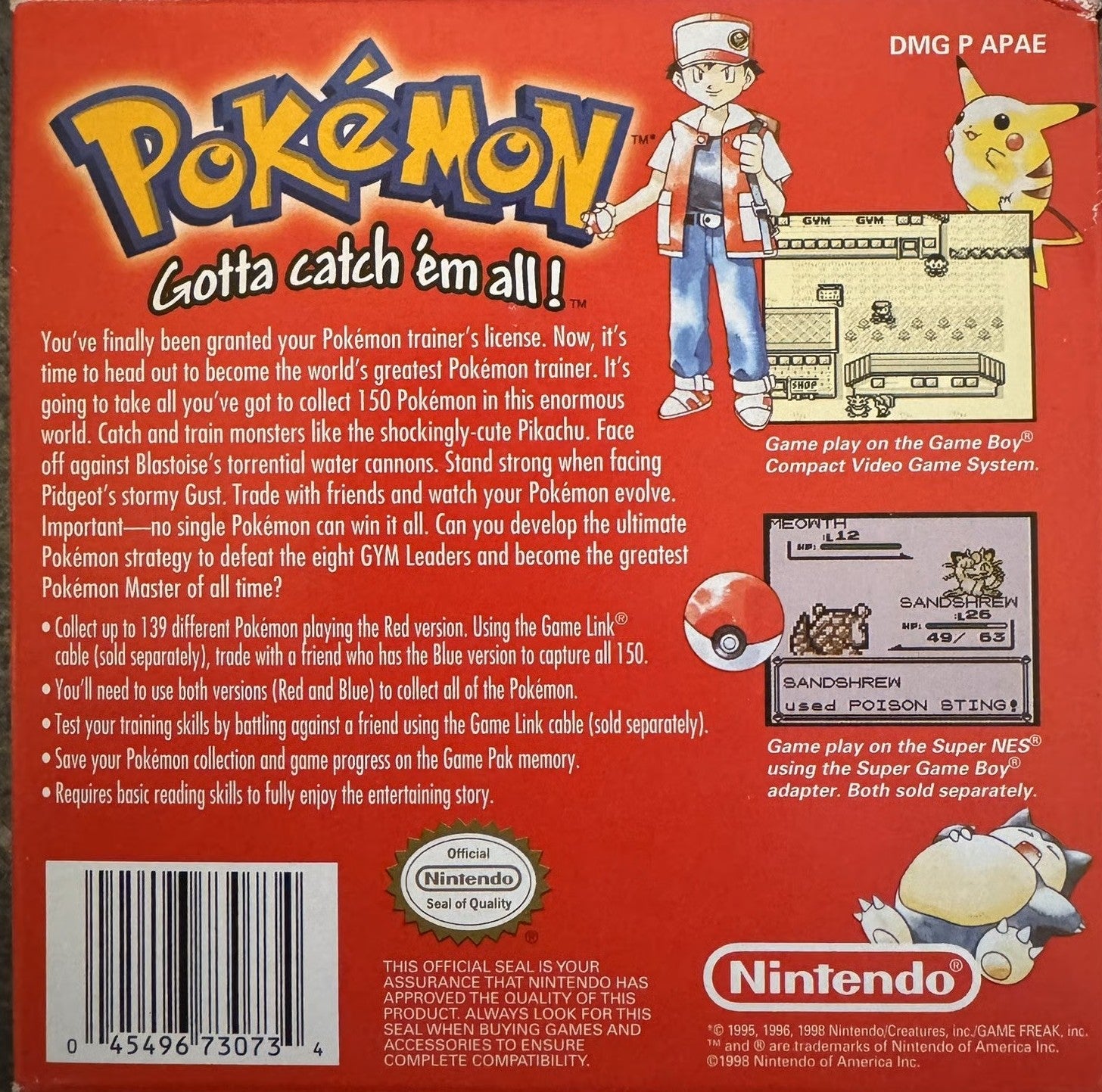 You've finally been granted your Pokemon trainer's license. Now, it's time to head out to become the world's greatest Pokemon trainer. It's going to take all you've got to collect 150 Pokemon in this enormous world. Catch and train monsters like the shockingly-cute Pikachu. Face off against Blastoise's torrential water cannons. Stand strong when facing Pidgeot's stormy Gust. Trade with friends and watch your Pokemon evolve. Important - no single Pokemon can win it all. Can you develop the ultimate Pokemon strategy to defeat the 8 GYM Leaders and become the greatest Pokemon Master of all time?