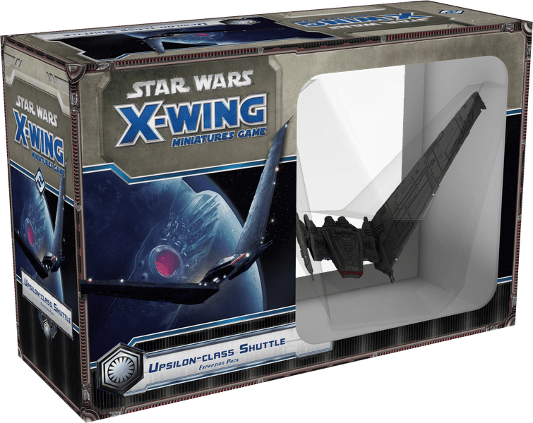Make your opponents fear the First Order and the dark side of the Force with the Upsilon-class Shuttle Expansion Pack for X-Wing™! It features one pre-painted, large-base miniature of the sleek, predatory shuttle that the First Order typically used to escort its high-ranking officers. Boasting both powerful weapons and shields, the shuttle also comes with a full complement of fifteen upgrades. These include advanced new technologies as well as the dark side warrior Kylo Ren, who allows you to hinder your foes with his associated condition, I’ll Show You the Dark Side.