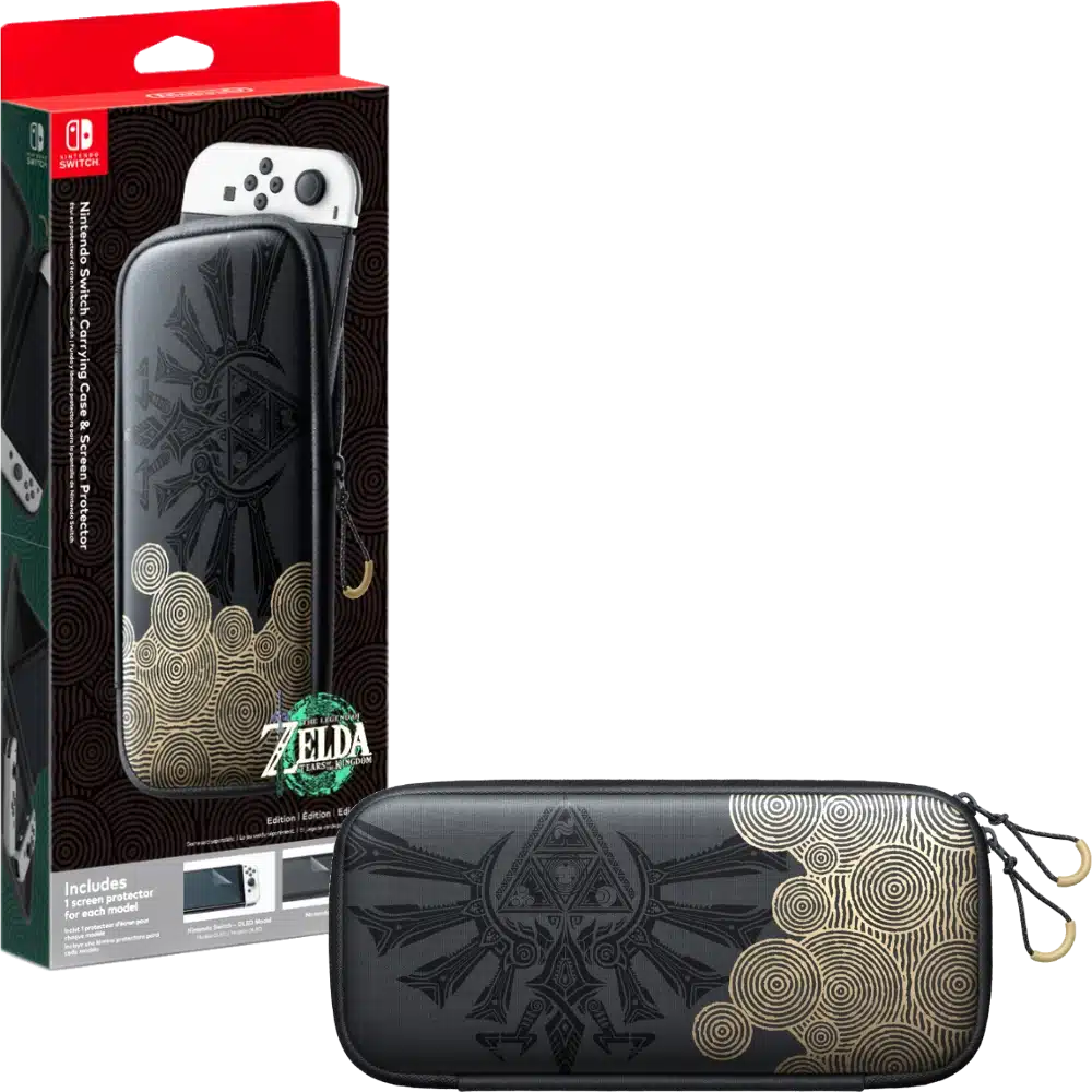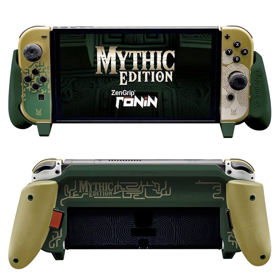 Bundle Includes The Legend of Zelda Tears of the Kingdom Special Edition OLED model, The Legend of Zelda Tears of the Kingdom Carrying Case, Satisfye ZenGrip Ronin Mythic Edition and Legend of Zelda Game Card Case
