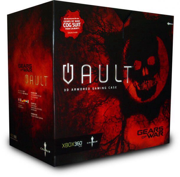 The Gears of War 3 Vault consists of one chassis, body panels and locking mechanisms. Unique features include: controller cradle, Infected omen, and an exclusive hi-def' Bleed Out finish.The Infected Omen lights up in 4 different modes to give a unique Gears of War custom illumination. The LED features different color modes and a completely interactive Gears of War 3 experience! The Vault dynamically glows crimson red every time you are downed by an enemy, telling you to recover and get back into the action.The All-New Calibur11 branded armor featured in Gears of War 3 (exclusively for the Xbox 360 Slim). In each box is the opportunity to win an official life sized Gears of War - Cog Armored suit sporting the C11 logo as seen in the Gears of War 3 game.